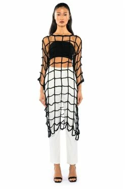 The AKIRA Label Amara Wide Knit Long Sleeve Midi Dress is made from an unlined acrylic base and features sheer knit netting, a high, square neckline, long sleeves, a scalloped hem, a midi length silhouette, and a slip-on design. Wear this piece over bodysuits or bathing suits to show off your cute layered look!