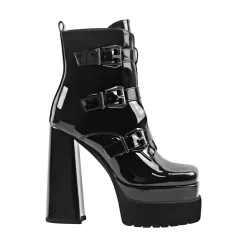 Be the first to review “Black Buckle Straps Decoration Square Toe High Chunky Heel Platform Boots” Cancel reply