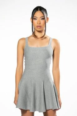 The AKIRA Label Caught Up Fit And Flare Mini Dress is made from a soft knit fabrication and features a scoop neckline, a sleeveless silhouette, a fit and flare mini skirt, and a pull-on fit.