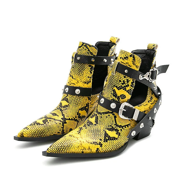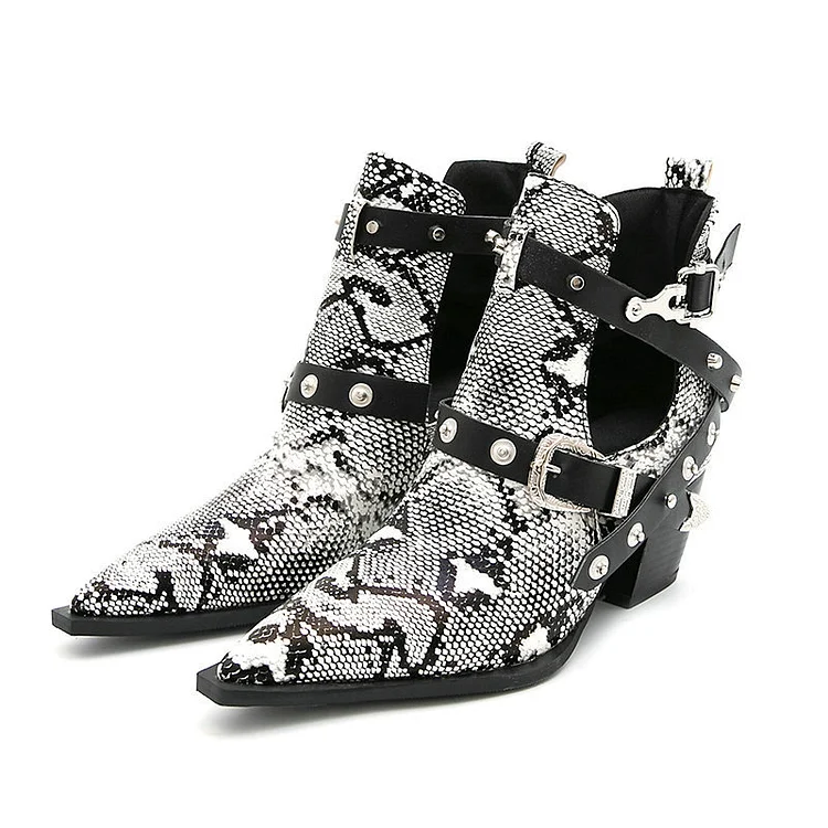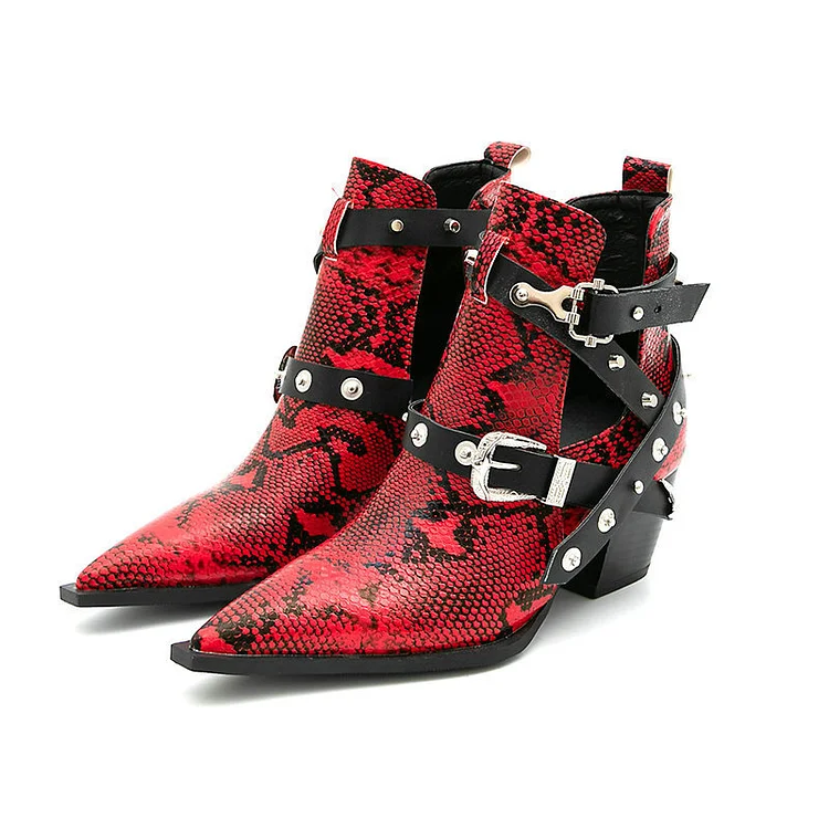 Be the first to review “Cobra Chunky Heel Buckle Straps Pointed Toe Boots” Cancel reply