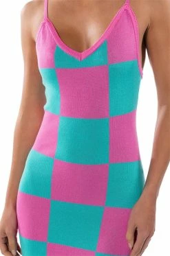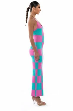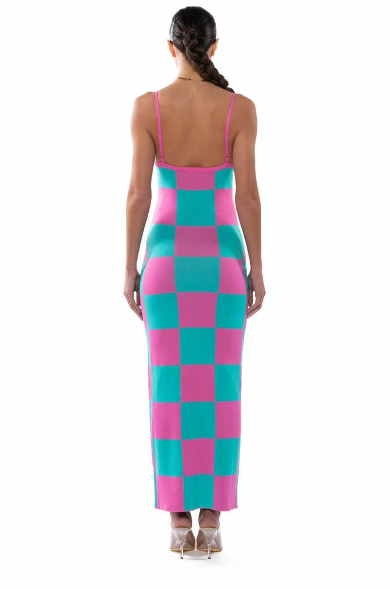 The AKIRA Label Dont Have To Say Much Knit Maxi Dress is made from a bold, stretch knit base fabrication and features a colorful two-tone checker print design, a V-neckline, and adjustable tank straps. Complete with a maxi length, a stunning bodycon fit, and a slip-on fit. Style with platform sandals and a matching beret for the full fantasy!