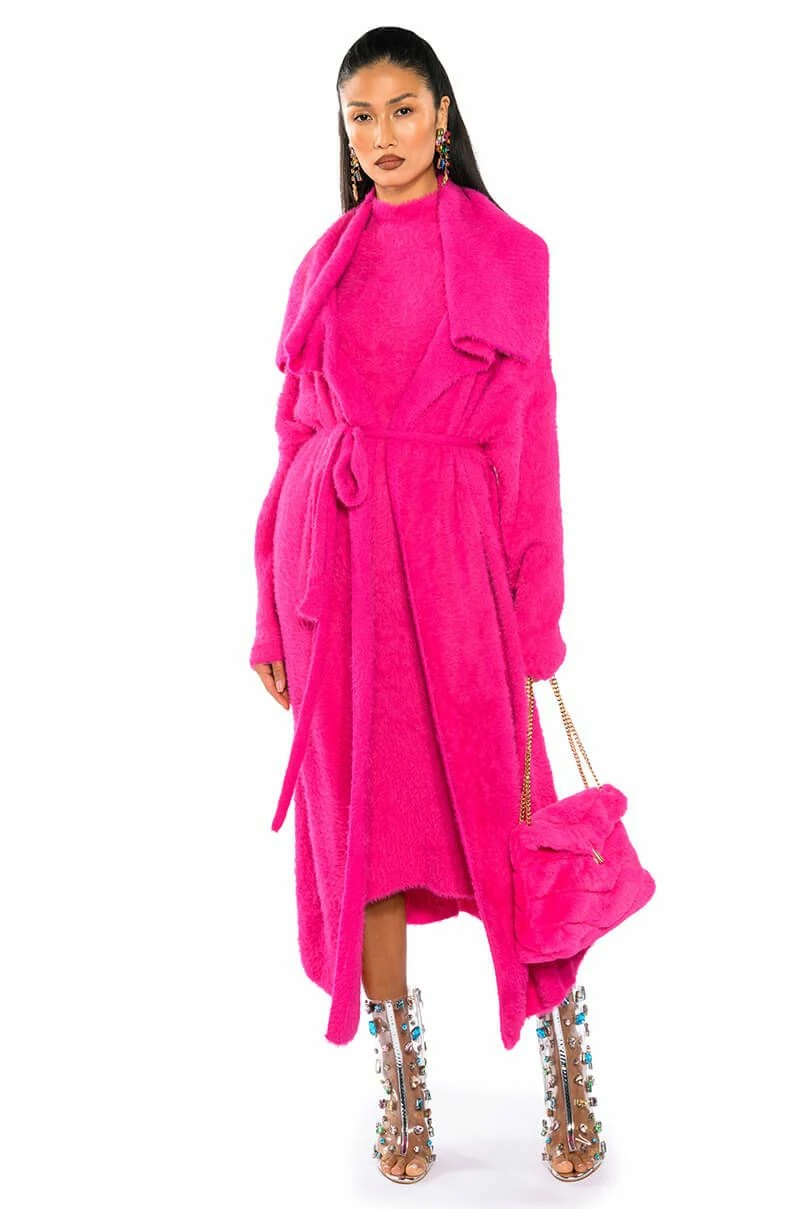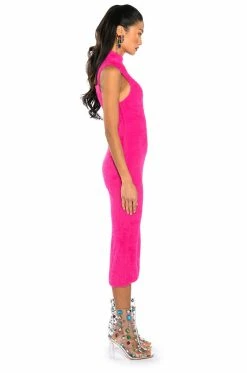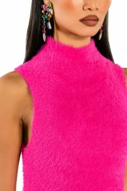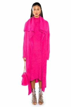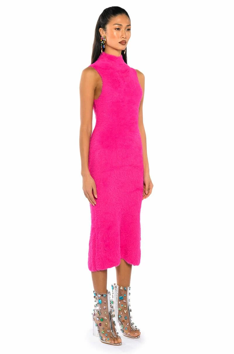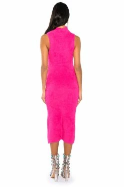 Chic, Sexy, Cozy. The AKIRA Label Ellory Textured Knit Maxi Dress is made from a fuzzy, stretch knit fabrication and features a mock neckline, a maxi length, a bodycon fit, and a sleeveless silhouette, Complete with a pull-on fit. Pair with the coordinating AKIRA Label Ellory Textured Knit Duster and the AZALEA WANG Daiane Slip On Wedge Sandal In Denim for a finished bold look.