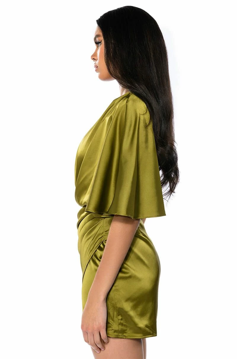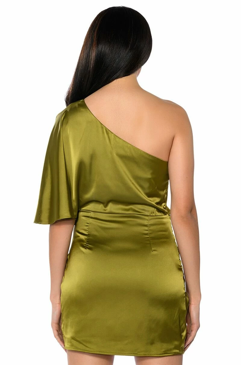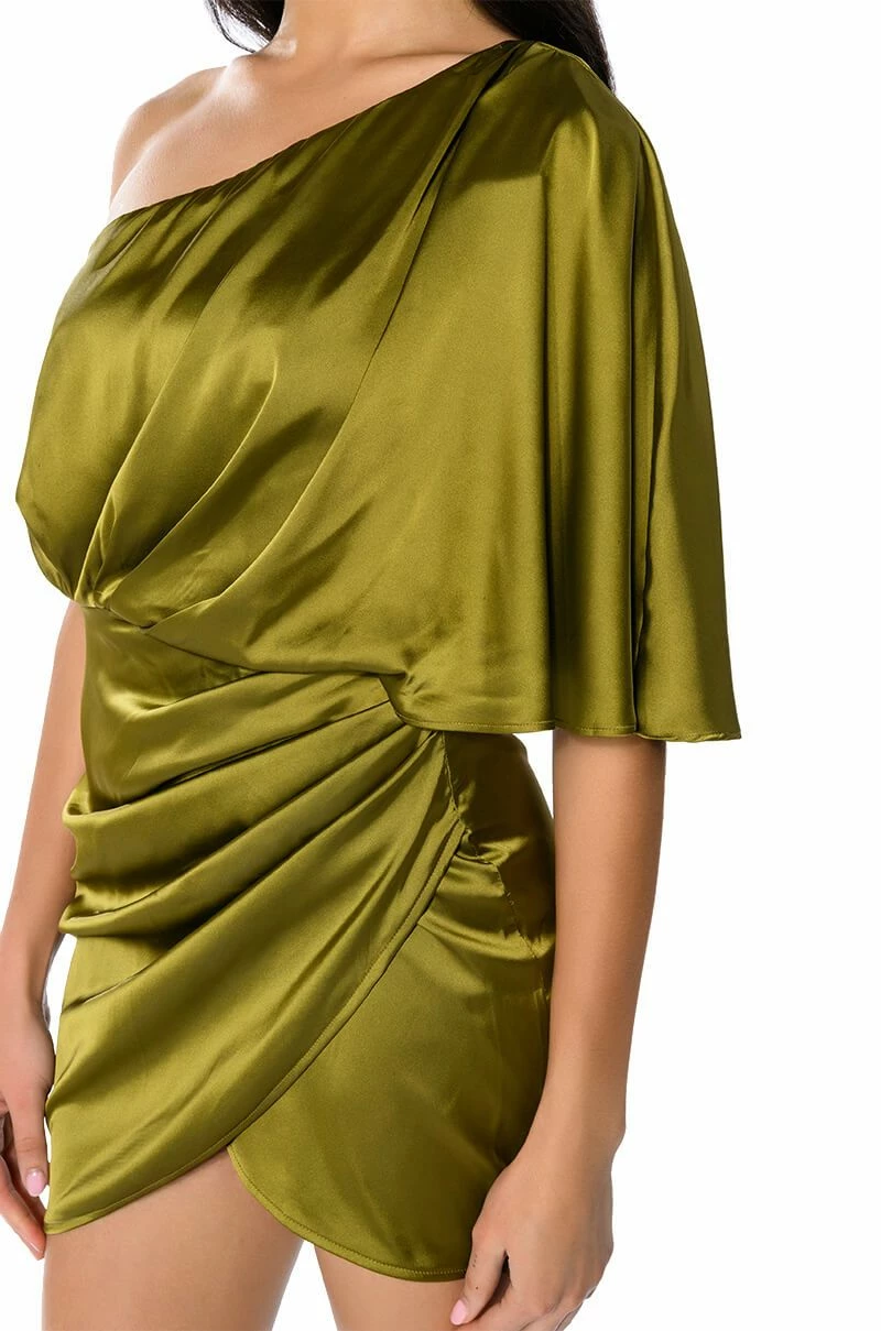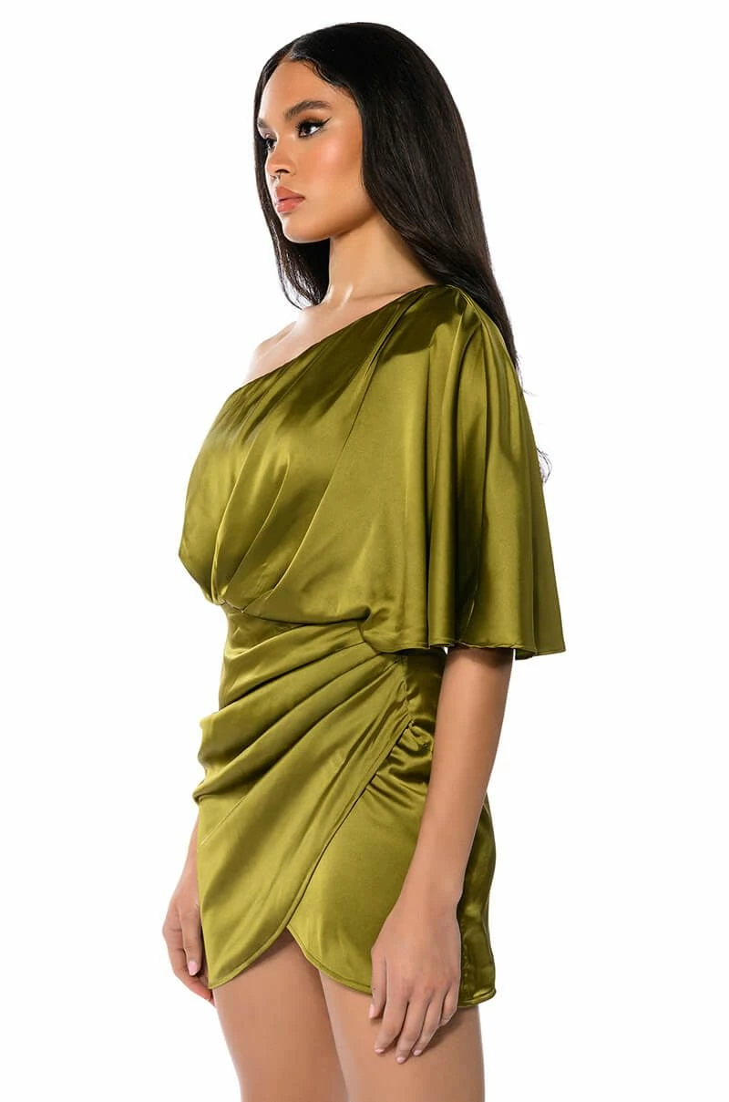 The Harmony One Shoulder Mini Dress is made from a smooth, satin fabrication and features a draped one shoulder design, elegant draping at the front side, a mini length, and a concealed side zipper closure. Pair with strappy heels and a clutch, for a sexy and chic soirée look!