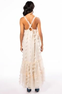 Float among the flowers with the AKIRA Label Hidden Garden Floral Detail Maxi Dress! This trapeze-style piece is made from a mesh overlay with textured blossoms and clipped dots featuring a scoop neckline, cross back elastic tank straps with ruffled lace trim, slick, opaque lining, a maxi length silhouette, ruffle trim detailing, and a pull-on fit. Style this piece with Western boots and a longline cardigan to finish off your whimsical look.