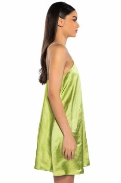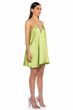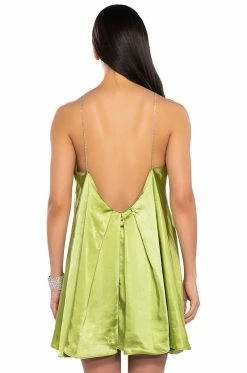 All that glitters is… The AKIRA Label Inez Sleeveless Trapeze Mini Dress! This glam number is made from a luxe, satin base fabrication and features a V-shaped neckline with zigzagging rhinestone link detail, rhinestone link tank straps, a gorgeous open back, and a mini length. Complete with a trapeze silhouette, smooth inner lining, and a slip-on fit. Style with strappy heeled sandals and a clutch for a girls night out look.