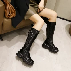 Be the first to review “Knight’s Style Buckle Straps Round Toe Fleeced Knee High Boots” Cancel reply