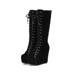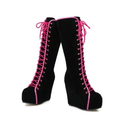 Be the first to review “Lace Up Color Block Zipper Platform Wedges Boots” Cancel reply