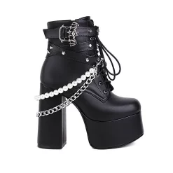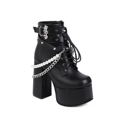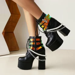 Be the first to review “Layered Chain Color Block Straps Square Toe Platform Boots” Cancel reply