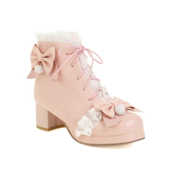 Be the first to review “Lolita Lace Paneled Bowknot Lace Up Chunky Heel Boots” Cancel reply