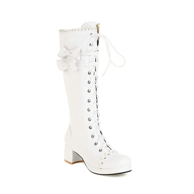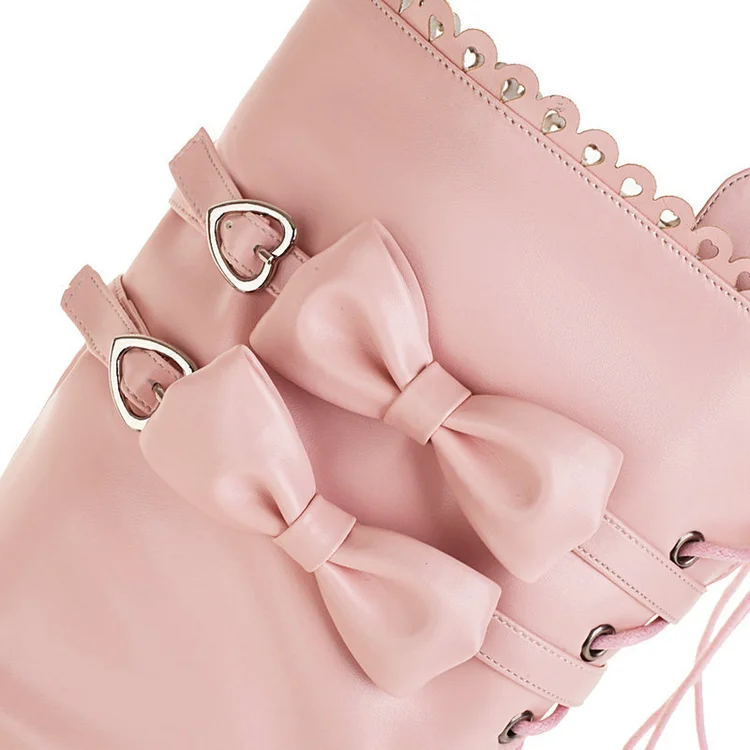 Be the first to review “Lolita Round Toe Chunky Heel Bowknots Straps Lace Up Boots” Cancel reply