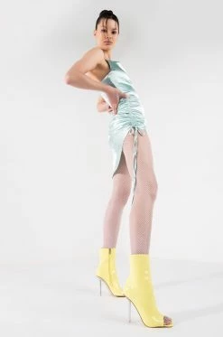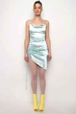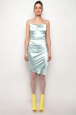 The AKIRA Label Loving Myself Satin Midi Dress features a soft and seductive satin fabrication, a draped cowl neckline, slim adjustable tank straps, a mini length, asymmetrical adjustable side ruched detailing, and a back zipper closure.