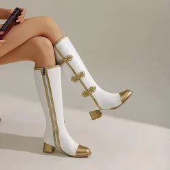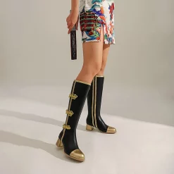 Be the first to review “NEW Color Block Buckle Frogs Side Zipper Chunky Heel Knee High Boots” Cancel reply