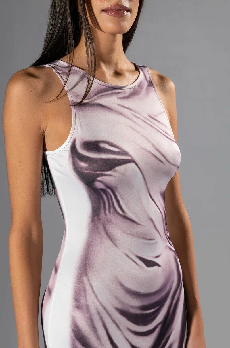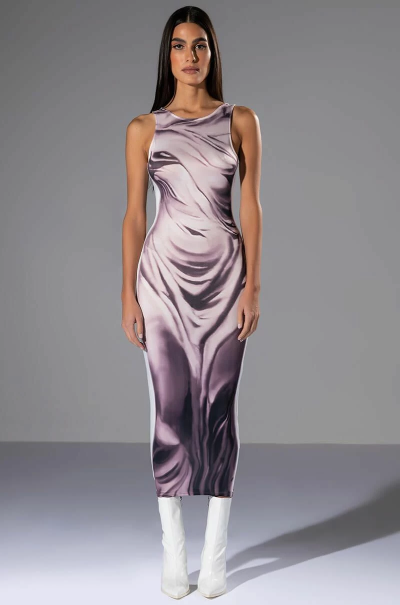 Indulge in some pillowtalk in The Akira Label Nothing But Sheets Sleeveless Maxi Dress! This form-fitting number features a stretchy, abstract nude graphic print, wide tank straps, and a flattering smooth finish. Complete with a maxi length silhouette and a bodycon design. Slip into this dress, throw on some booties, and you’re party-ready!