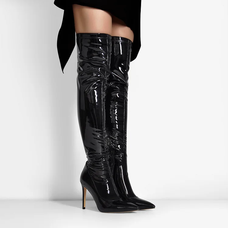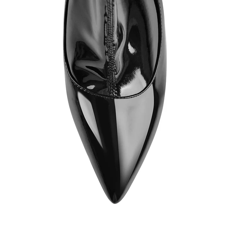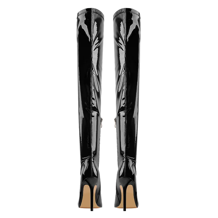 Classic pattern is still attracting people’s attention, solid black color, lace-up, patent leather. You are the cool and statement woman. Over the knee high boots brings comfort to you , making you relax for one day. 12 sizes are offered to fit your feet.