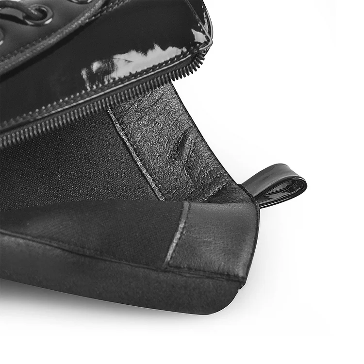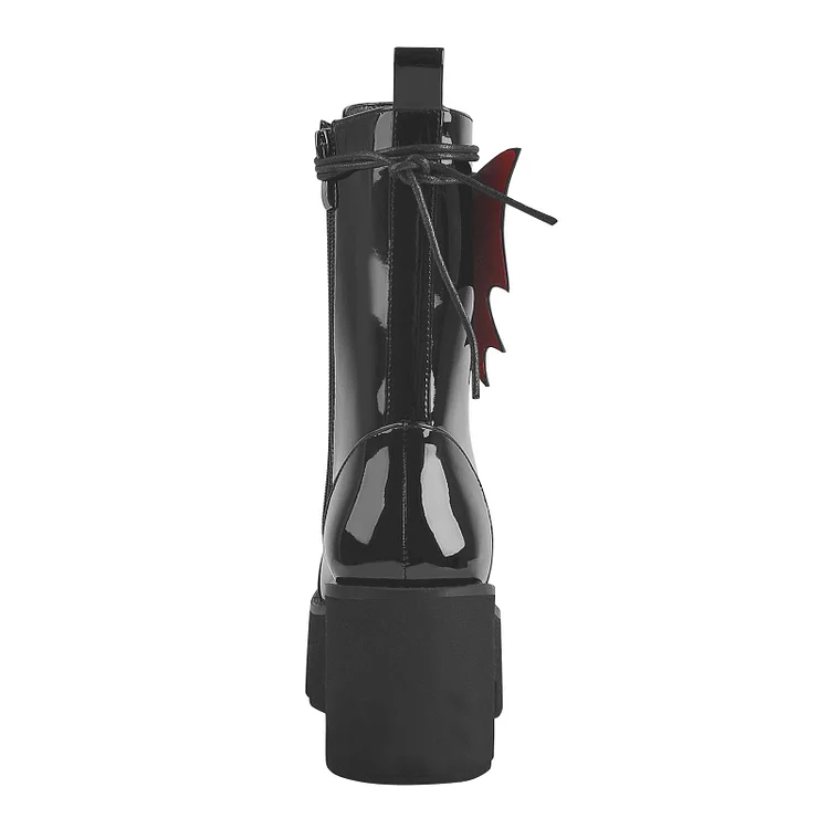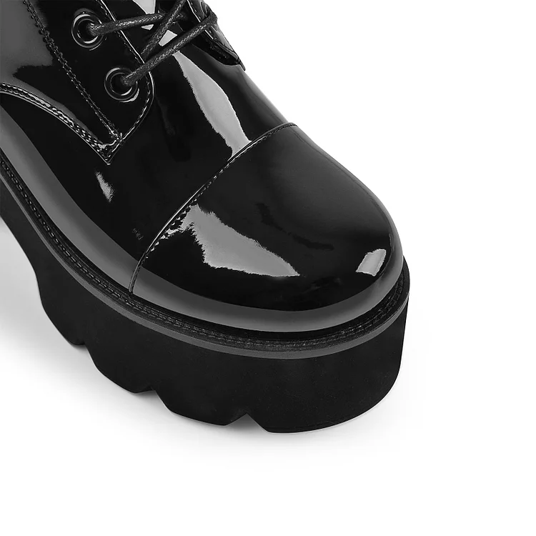The elements of industrial style boots are in it, patent leather, lace-up and wing decoration. You are the cool and statement woman. Steady chunky platform brings comfort to you , making you relax for one day. Chunky platform could let your legs slimmer and optimize your body ratio. You are the one.