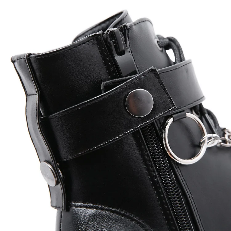 The elements of industrial style boots are in it, PU, lace-up,and chain-trimmed. You are the cool and statement woman. Steady chunky platform brings comfort to you , making you relax for one day. Chunky platform could let your legs slimmer and optimize your body ratio. You are the one.