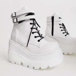 The wedge heel can firmly support and connect the heel part and the forefoot part, so that 60% of the shoes will not deform during wearing.You can choose from a variety of colors, including Fascinating psychedelic colors.Fascinating psychedelic colors. The psychedelic and chic styles present a fascinating psychedelic effect under different light and angles.The lace decoration makes the whole shoe body less monotonous and full of design.Shoes are of novel styles and unique shapes. They closely follow the trend and show an alternative aesthetic feeling of the trend.