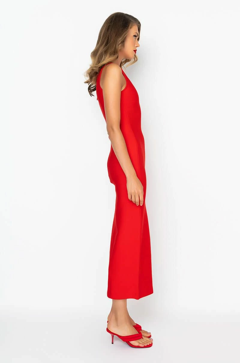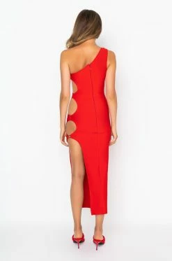 Meet us on the floor in the AKIRA Label Save It For The Dance One Sleeve Maxi Dress! This dress is made from a bandage fabrication, and is complete with side cut outs with buckle details, a one shoulder tank strap, and a hidden back zipper closure. Complete your evening ensemble with a pair of gold detailed stilettos.