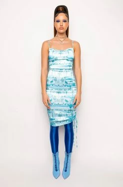 This sultry satin piece is just what you need in your wardrobe. The AKIRA Label Sure Thing Midi Dress features a draped cowl neckline, slim adjustable tank straps, a midi length, baroque print patterning, asymmetrical adjustable side ruched detailing, and a back zipper closure. Pair with strappy sandals and a sleek updo for a look that’s just right.