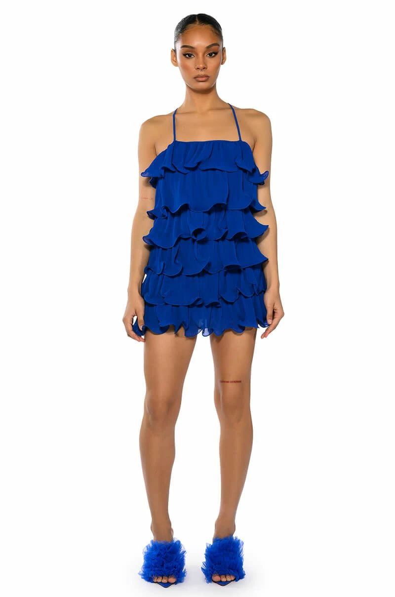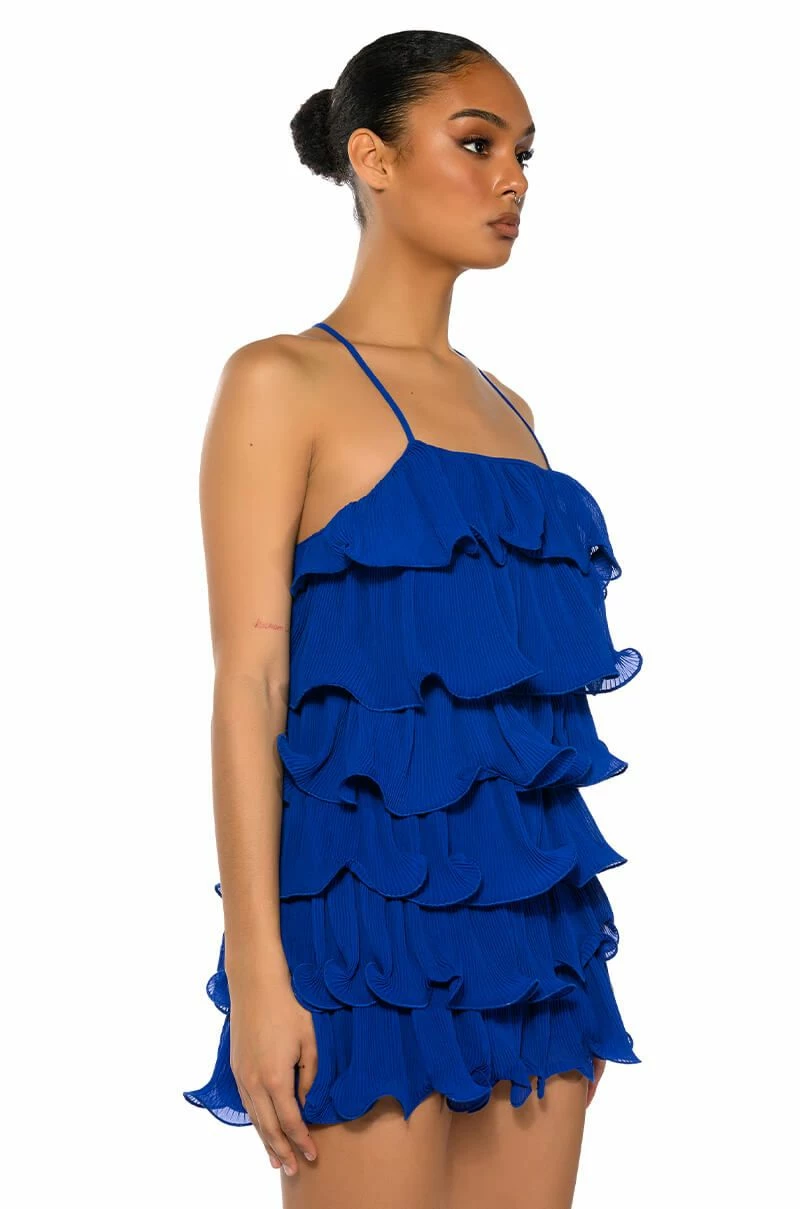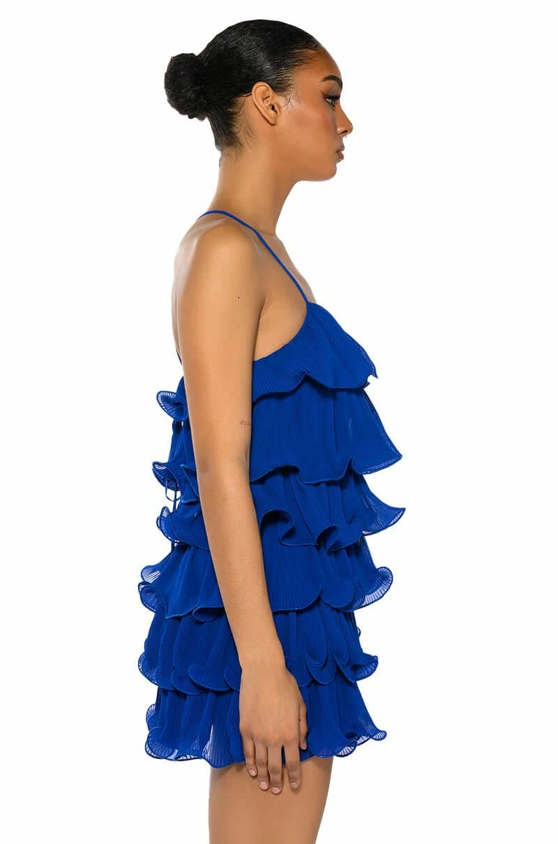 Gotta craving for something cute? The AKIRA Label Sweetie Pleated Ruffle Sleeveless Mini Dress in Blue is the perfect party dress confection. This voluminous beauty features a classic scoop neckline,slim tie back straps, and pleated ruffle detailing throughout. Complete with a smooth inner lining and a concealed side zipper closure.