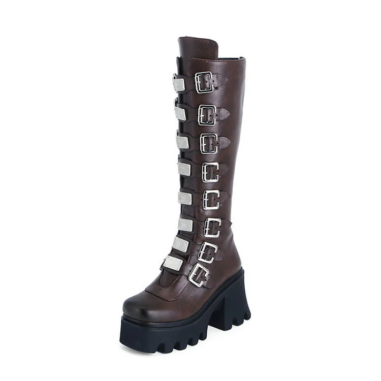 Be the first to review “Swing Goth Chunky Heel Platform Knee High Boots” Cancel reply
