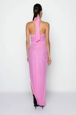 Time to get the party started! The AKIRA Label The Beat Drop Wrap Top Midi Dress is made from a stretchy nylon fabrication and is complete with a front wrap top halter neck, allover rhinestone detailing, and a back zipper closure.