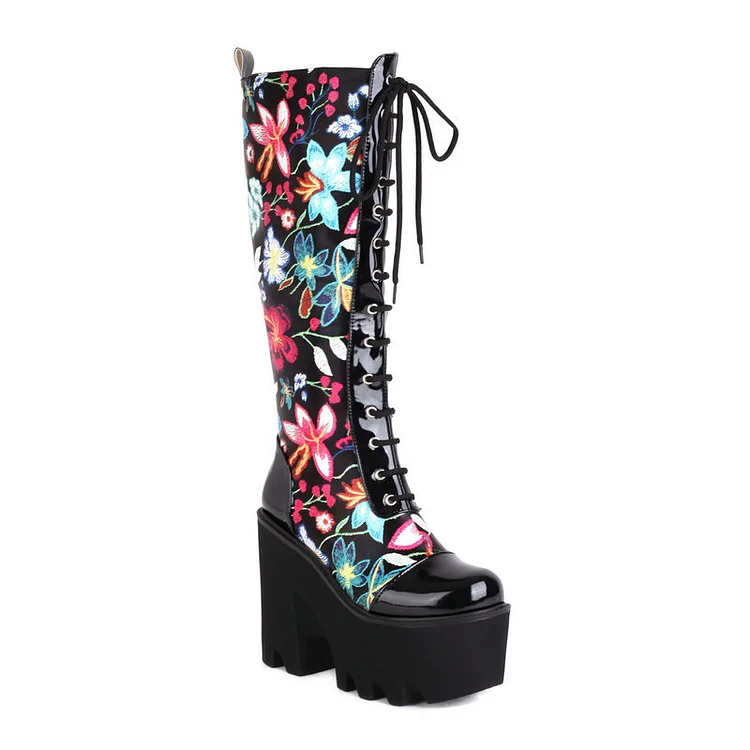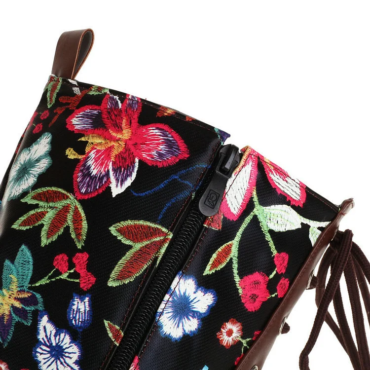 Be the first to review “Trendy Floral Embroidered Paneled Round Toe Chunky Heel Fleeced Platform Boots” Cancel reply