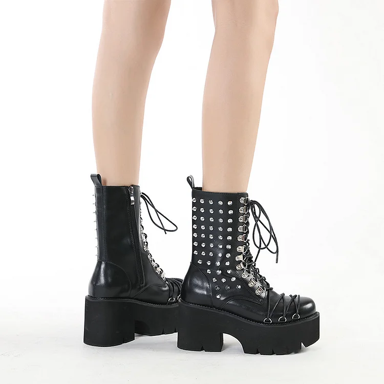 Be the first to review “Trendy Lace Up Round Toe Rivets Side Zipper Platform Boots” Cancel reply