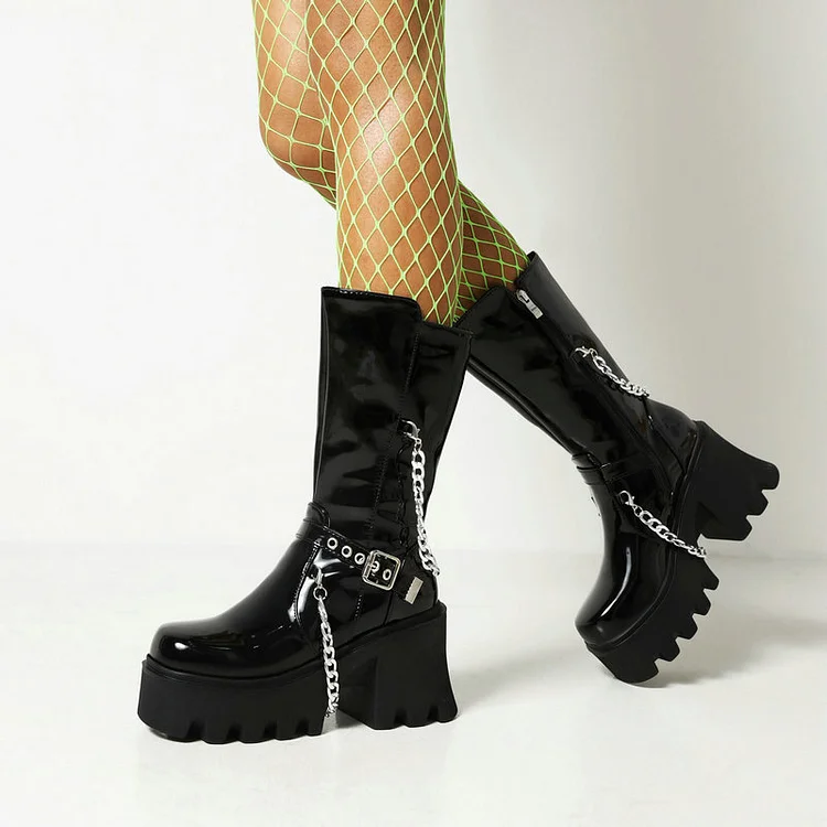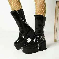 Be the first to review “Trendy Solid Color Buckle Strap Chains Decoration Platform Boots” Cancel reply
