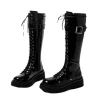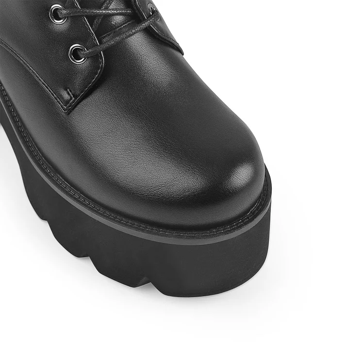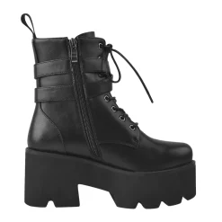 Classic pattern is still attracting people’s attention, solid black color, lace-up, cross straps, and pockets decorated. You are the cool and statement woman. Steadibility brings comfort to you , making you relax for one day. 12 sizes are offered to fit your feet.Every outfit will be pairs with these adorable shoes. These are easy to match with jeans, skirt and your versatile for dressy or casual wear.With Kistania Branding, premium PU material.