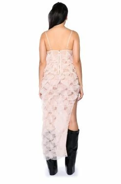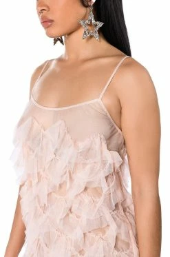 Dreaming of some sheer genius? Time to add The AKIRA Label Wishlist Mesh Textured Maxi Dress to cart. This maxi length dress features a ruffle sheer tulle fabrication, a scoop neckline, slim adjustable tank straps, a high side slit, and a pull-on fit. Pair with a short sleeve t-shirt and distressed denim for a complete look.